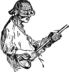 Он сидит на вагонетке и, повидимому, отдыхает, пока не будет готов плав в одной из остальных печей.