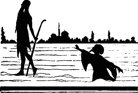 Но незнакомец твердым шагом подошел к берегу, ступил на воду и пошел по поверхности реки, как по твердой земле.
