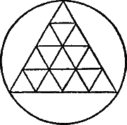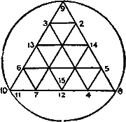 В круге начерчен треугольник, разбитый на ряд меньших треугольников. Попробуйте из любой точки пройти все линии, не проходя их дважды (круг считается так же, как одна линия). Если вы сумеете сделать это впродолжение 14 минут, то вы обладаете недурной памятью. (Ответ см. ).
