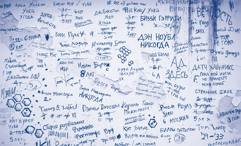 Каждый за́мер, не в силах выговорить и слова. Стены, от пола до потолка, были покрыты царапинами, будто кто-то изрядно поработал резцом.