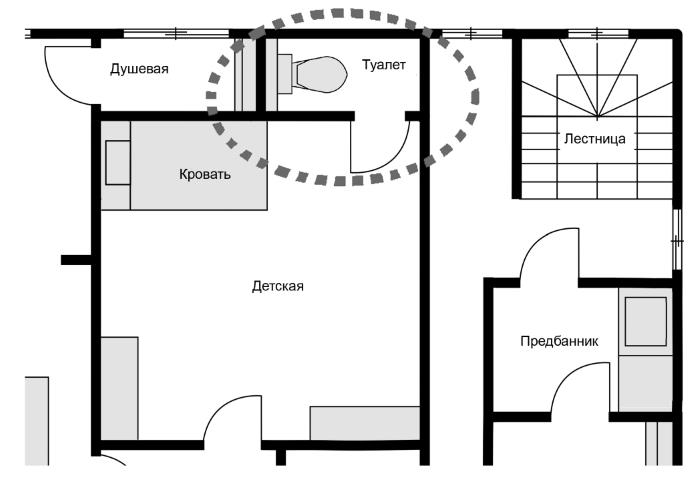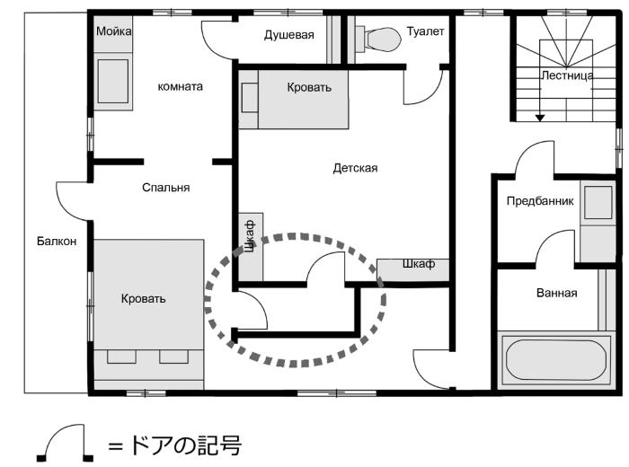 Курихара: К тому же в этой комнате есть еще одна непонятная деталь. Посмотри на туалет. Судя по расположению двери, в него можно попасть только из детской.