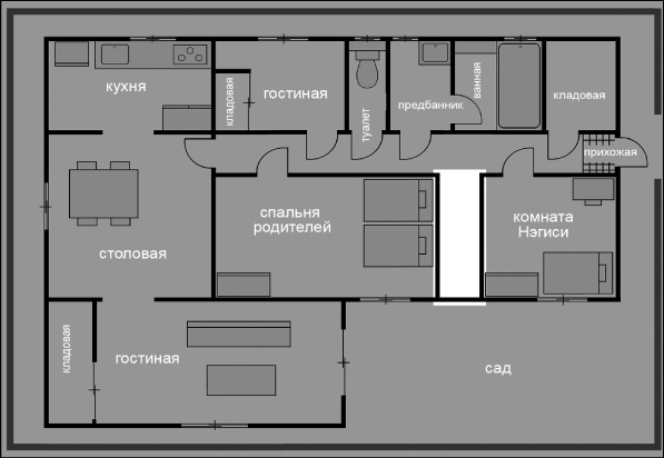 К примеру, если б на месте сада планировали возвести комнату, то в спальне ваших родителей не стали бы делать окно. Стена, в которой оно расположено, не являлась бы внешней. Планировку для этого дома разрабатывали профессиональные архитекторы, верно? Сомневаюсь, что им пришло в голову расположить окно в стене между двумя спальнями.