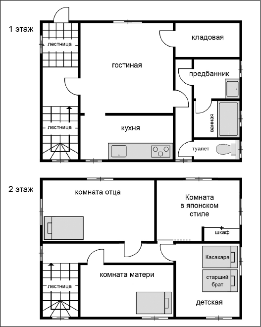 Касахара: Ой, простите! Совсем забыла сказать. Наш район изначально застраивался домами на продажу. Поэтому планировки в округе одинаковые. Соседи даже шутили, что мы живем в домах-клонах.