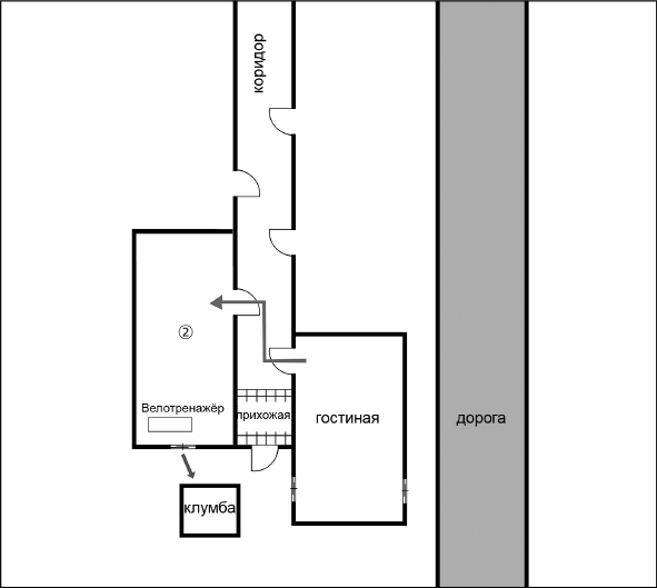 Курихара: Это дает нам понять, что велотренажер находился в комнате ②.