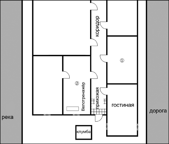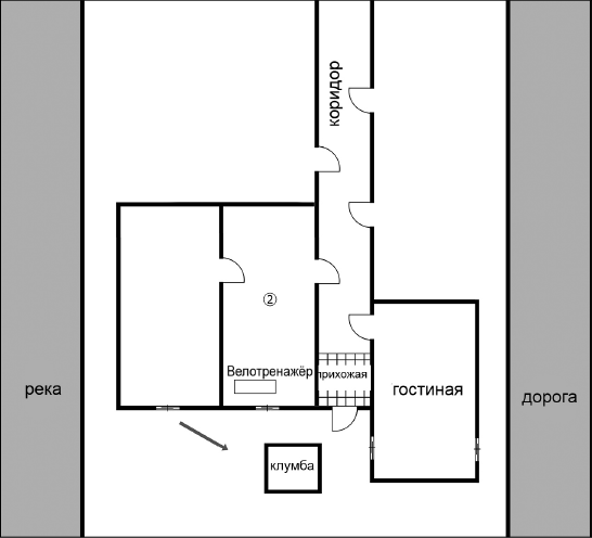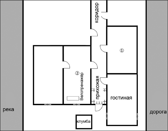 2. «Потом я вышел в коридор и зашел в соседнюю комнату с той, где мы едим. Из больших окон виднелась клумба. Посередине комнаты стояло что-то похожее на велосипед. Дядя объяснил, что это велотренажер. Я даже попробовал покрутить педали, оказалось, что это весело. В этой комнате имелась еще одна дверь, она вела в пустую комнату. Из одного окна тоже можно было увидеть клумбу, а из другого – речку».