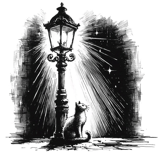 Очнулся он на ступенях набережной недалеко от моста. На лестницу был накинут легкий морок, чтобы отвести глаза случайных прохожих. Рядом сидел кот и вылизывал бока. Единственное, что было понятно об окрасе кота, – это белые носочки на передних лапах. В остальном, как и все кошки ночью, этот кот был сер.
