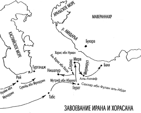 После битвы при Нехавенде халиф Умар отдал приказ войскам окончательно завоевать Иран и углубиться в его территорию. Дальнейшее продвижение мусульманской армии осуществлялось следующим образом: