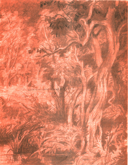 Кену надоело лежать в спальном мешке, ему было неудобно, жарко, кусались комары, и утомительно было прислушиваться к звукам. Хотелось, чтобы скорей рассвело. После того как луна зашла, кругом стало темным-темно, а когда он открыл глаза, то обнаружил вот этот полумрак, который ему очень понравился.