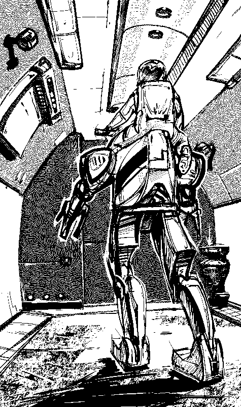 Шагая медленно, с механической точностью, гигантские роботы миновали дверь, косяк которой пришелся едва в Полуметре над их головами, так что всадники поспешили пригнуться. Узкий коридор, под сводами которого мерно громыхали тяжелые, неторопливые шаги гигантов, привел их в шлюзовую камеру, где им пришлось подождать, пока будет выкачан воздух.