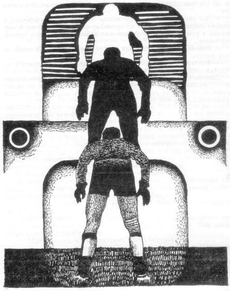 В субботу я снова оказался в Гатсвилле, но уже с аппаратурой. При мне была старомодная латунная подзорная труба, позаимствованная у знакомого астронома-любителя, и маленький транзисторный приемник. Все это нехитрое оборудование я затащил на вершину террикона, устроился поудобнее и принялся ожидать начала матча. Местная радиостанция транслировала ход встречи, поэтому я знал, что происходит на поле. Через несколько минут после начала встречи тренер вошел в свою комнату, запер дверь на ключ, включил телевизор и открыл сейф. Первое время наблюдения мои были несколько затруднены тем, что я все видел вверх ногами, но в конце концов я к этому привык. Матч проходил по уже знакомой схеме. В особо горячие моменты у ворот гостей Датч поворачивался к сейфу и крутил какую-то ручку, вероятно потенциометра. Впрочем, шкаф был забит самыми различными электронными приборами. Через полчаса я понял, что ничего больше не узнаю, убрал трубу в футляр и пошел смотреть матч. Закончился он, как и полагалось, победой хозяев. Еще раз сыграл свою роль «допинг» гатсвилльских болельщиков…
