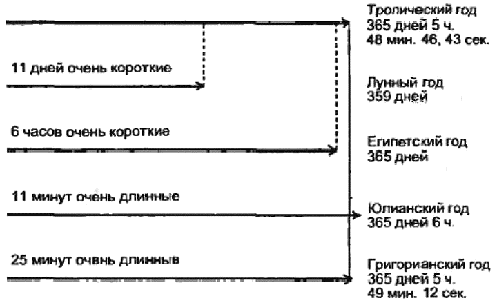 Египетский год продолжался 365 дней, но фактически тропический год (от солнцестояния до следующего солнцестояния или от равноденствия до следующего равноденствия) ближе по продолжительности к 3651/4 дням.