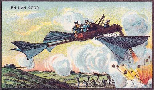 Самым интересным самолетом является самолет в центре, который очень похож на самолет, разработанный братьями Райт, которые будут летать через четыре года после создания этой иллюстрации. Конечно, совершенно немыслимо, чтобы скоростной самолет 2000 года был похож на любой из представленных здесь или чтобы гонки на самолетах стали популярными просто потому, что риск очень велик, а мастерство, которое нужно продемонстрировать, довольно мало.
