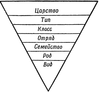 Рис. 1. Диаграмма, показывающая в нисходящем порядке основные группировки живых форм (от царства до вида).