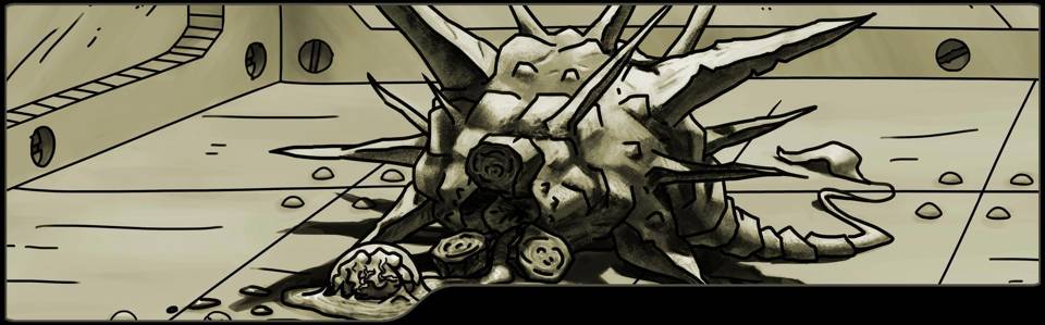 Зверь, однако, был слишком огромен и силен, чтобы так просто сдаться. Неожиданно проворно он начал уползать подальше от корабля, оставляя за собой страшный след из выпавших внутренностей и разноцветной жидкости. Спустя пару минут существо скрылось за линией горизонта.