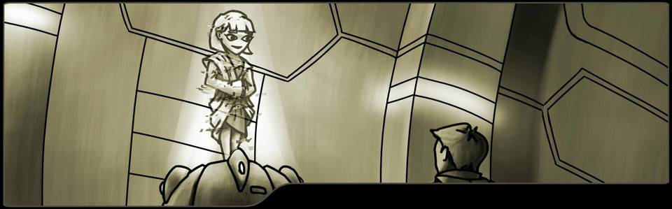 'Здравствуй, наш далёкий потомок! Если ты здесь, значит, человечество смогло найти новые миры во Вселенной, а наш Путь был правильным! Мы верили, что любовь и сострадание сильнее любого оружия и, по-видимому, мы не ошиблись.
