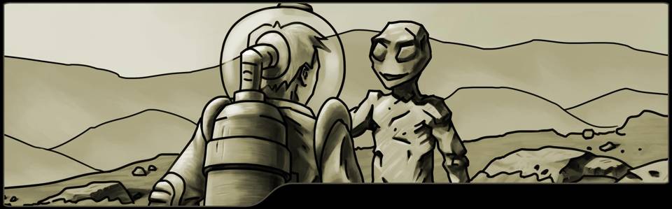 Ещё одна яркая вспышка. И звон в ушах, словно по башке кто-то ударил. Черт, не могу пошевелиться! Ой, что это? Кажется, слышу чей-то голос. Но скафандр не может пропускать подобные звуки! Ага, значит это звуковая иллюзия. Так вот в какие игры ты играешь, статуя… Хочешь мне что-то рассказать? Ну что ж, я готов, даже любопытно. Излагай!
