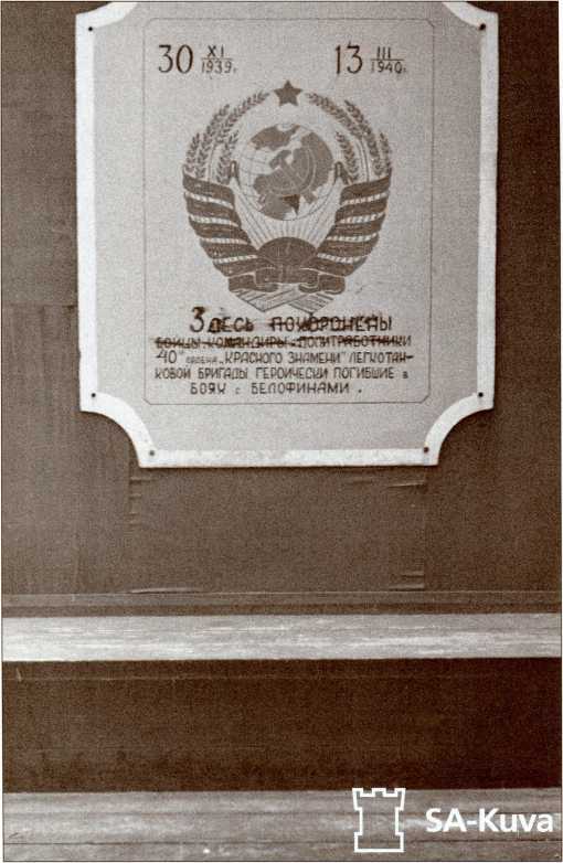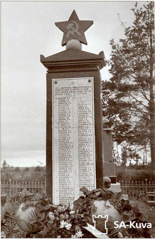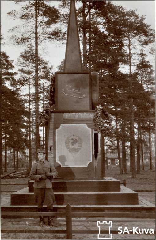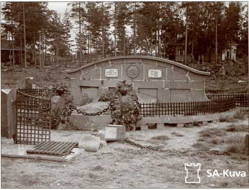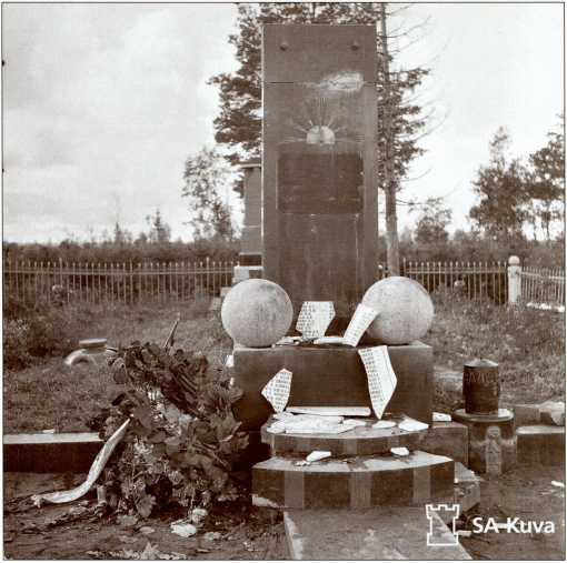 Братская могила 35-й легкотанковой бригады южнее деревни Сумманкюля (урочище Солдатское), 1941 год. Вскоре финские солдаты сбили с могилы звезду и разбили плиту с именами погибших танкистов. В наше время на этой братской могиле нет ни одного имени из первоначального списка.