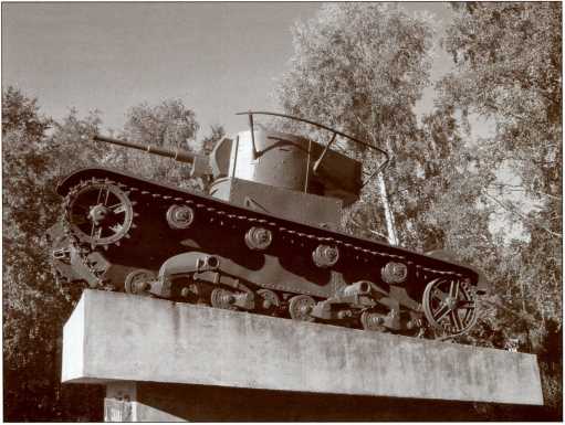 Макет танка Т-26 – памятник советским танкистам зимней войны в Питкяранте, Карелия.