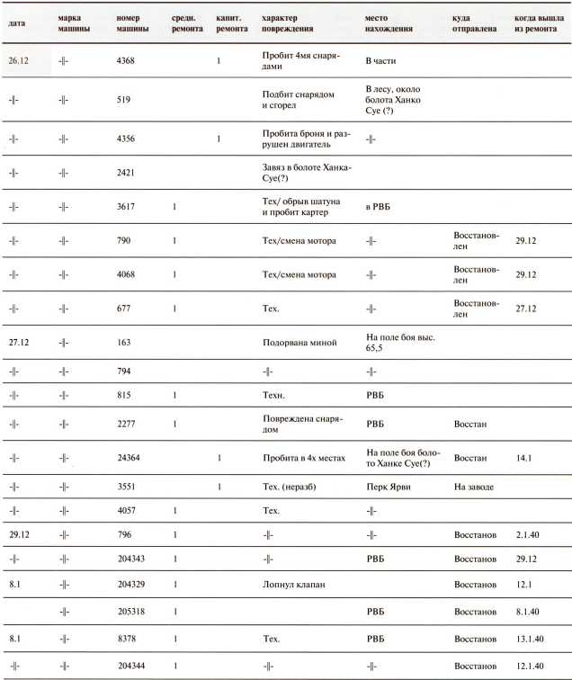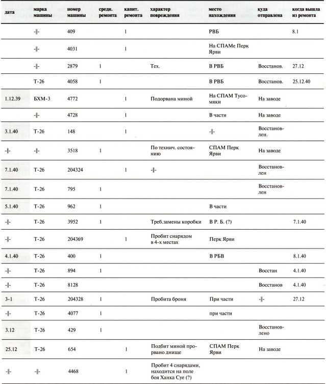Потери 40-й легкотанковой бригады за декабрь 1939 года