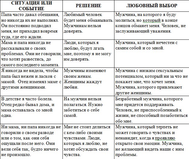 Жизненный опыт – Решения – Эмоциональная программа – Любовный выбор