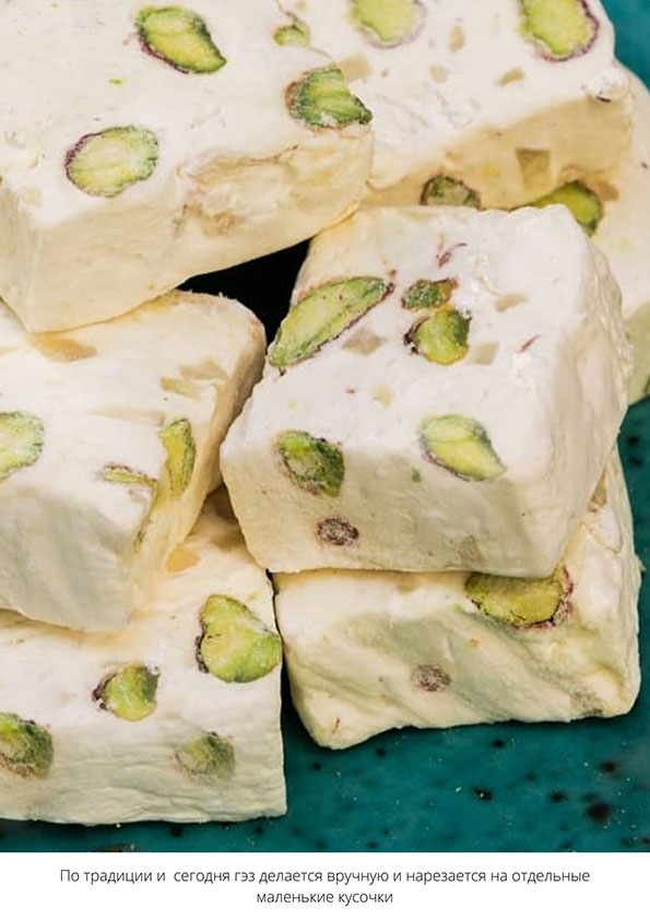 Гэз – так традиционно называют персидскую нугу, которую впервые начали делать в городе Исфахан, расположенном на центральном плато Ирана. Там гэз делают уже не менее 450 лет.