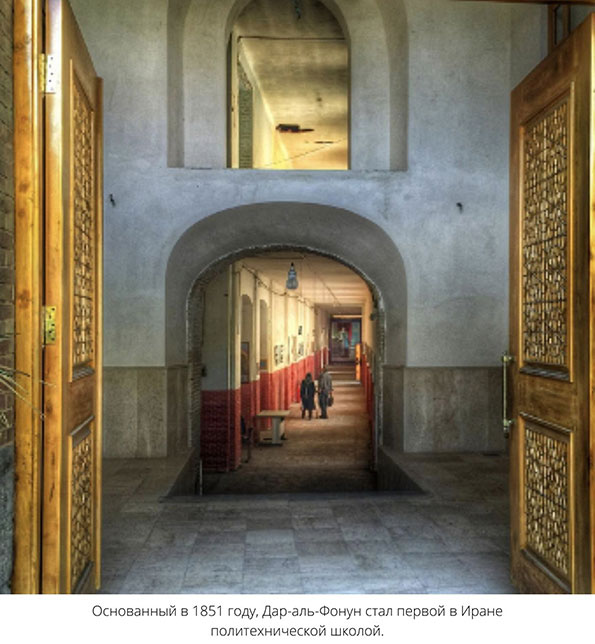 Основанный в 1851 году, Дар-аль-Фонун стал первой в Иране политехнической школой. Её основал Амир-Кабир, знаменитый визирь Насреддин-шаха Каджара, реформировавший Персию в духе Нового времени. С первых лет здесь преподавали медицину, военное дело, инженерные науки и геологию. Именно на основе Дар-аль-Фонун позднее появилось главное высшее учебное заведение страны – Тегеранский университет. Прежнее здание Дар-аль-Фонун на улице Насир-Хосроу, на юге Тегерана сохранено и превращено в музей. Сегодня он открыт для туристов.