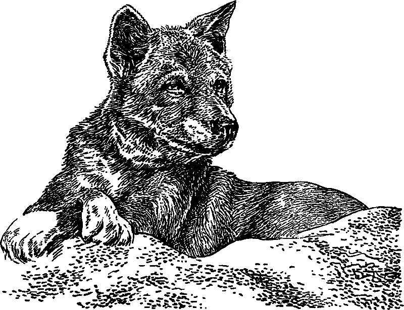 «Животное стояло, тяжело и часто дыша, глаза его сверкали и даже цвет их изменился. Вдруг что-то похожее на плач вырвалось из его груди. С этой минуты моего динго словно подменили. Он больше не играл, мало и неохотно ел, а меня словно и не признавал. Когда в одну из последующих ночей вблизи вновь послышалось знакомое завывание, я решил отпустить своего пса познакомиться с сородичами. Огромными скачками он исчез в темноте. Я поспешил за ним следом, но вскоре потерял его из виду.