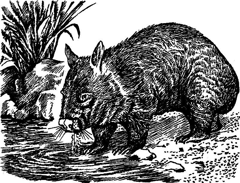 Выяснилось это в 1914 году, когда работники Галльского зоопарка, к своему несказанному удивлению, неожиданно обнаружили, что детёныш вомбата выглядывает наружу… между задними ногами своей матери. Значит, сумка вомбата открывается в обратную сторону! Насколько мне известно, это был вообще единственный случай удачного размножения вомбата в неволе. Правда, в 1931 году этого же удалось добиться и в Англии, в городе Випснеде. У маленького вомбата его первое в жизни путешествие – из влагалища самки в её сумку – значительно короче и безопасней, чем у новорождённого кенгурёнка. Зато самке вомбата значительно сложней с «уборкой» в сумке: она не в состоянии, как мамаша-кенгуру, открывать её руками, всовывать туда голову и наводить в ней порядок. Да и лапы у вомбата не приспособлены для подобных операций: они слишком коротки и неуклюжи.
