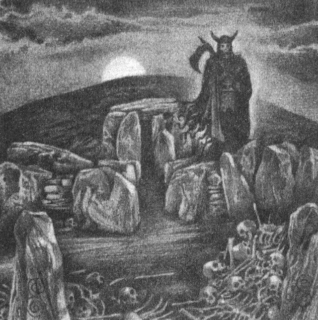 У скандинавов идея о погибших и скрытых сокровищах была также связана с поверьями о гномах и троллях – выносливых, но часто вспыльчивых существах, которые, по их мнению, жили под землей. В своем переводе «Поэтической Эдды», (1962) Ли М. Голландер рассказывает нам о том, что предположительно название «живущие глубоко под землей гномы» в Двергатале (каталоге гномов) произошли от слов «холод», «опустошение» и «смерть». (Кстати, интересно отметить, что одно из имен, используемых в этой древней работе, – Гэндальф – впоследствии будет взято для имени могущественного волшебника Дж. Р.Р. Толкиеном в его эпическом произведении «Властелин колец».) Гномы охраняли свои сокровища, и так же поступали Неумершие. Несомненно, некоторые личные богатства были захоронены в могилах предков, и тот, кто пытался забрать их, считался храбрым могильным вором. Хаугбуи ревниво охраняли ценности, которые лежали в их могиле, и защищали себя, как правило убивая любого злоумышленника, поедая его плоть или выпивая его кровь. Действительно, курганы стали считаться домами хаугбуи, и любой вторгшийся туда человек считался меченым.