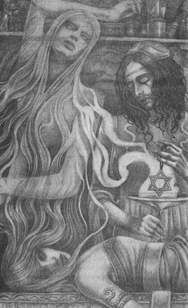 Намеки, скрытые в этом официальном библейском тексте, указывают на самую древнюю семитскую магию и фольклор. Пожалуй, более подвергшаяся цензуре версия короля Джеймса приукрашена, но следы фольклора присутствуют. Немощный пожилой король давно прожил свои лучшие годы и стремится восстановить свою силу, что позволит ему продолжать править. Его слуги советуют, чтобы он возлег с молодой девушкой, чтобы «впитать» в себя ее жизненную силу, которая позволит ему разобраться с угрожающими мятежами, охватившими страну. Итак, к нему привели Ависагу и положили с ним (она «нежно любила», как причудливо говорится в варианте Библии короля Джеймса), чтобы восстановить его жизненные силы. Их соединение не является сексуальным, о чем точно говорится в тексте («но царь не познал ее»), а просто представляет собой один из видов магической передачи энергии. В некоторых религиях Ближнего Востока также утверждается, что некоторые кахины (древнеарабские оракулы) могли забирать жизненную силу у своих жертв даже на расстоянии. (Интересно, что это поверье существовало также и у скандинавских викингов, которые считали, что древнескандинавские ведьмы, в частности ведьмы из Оркни и с Северных островов, действительно могли высасывать жизненные силы из тех, кто им не нравился, даже на расстоянии многих миль. Этот процесс или заклятие было известно под названием мундклем – «похищение дыхания».) В более поздней еврейской религии некоторым учителям приписывалась сила вытягивать энергию у инакомыслящих членов своего религиозного братства с целью наказания или предостережения.
