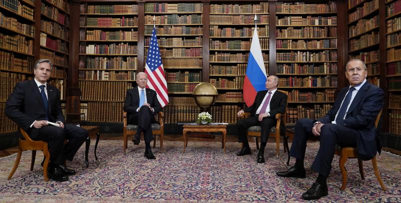 1. Госсекретарь США Тони Блинкен (слева) и президент США Байден (в центре слева) встречаются с президентом России Путиным (в центре справа) и министром иностранных дел Сергеем Лавровым (справа) 16 июня 2021 года в Женеве, Швейцария. «Почему вы покинули Афганистан?» Путин, обладатель черного пояса по дзюдо, спросил Байдена, пытаясь вывести его из равновесия. «А почему вы ушли?» ответил Байден, имея в виду позорный уход Советского Союза из Афганистана в 1989 году после 10 лет оккупации.