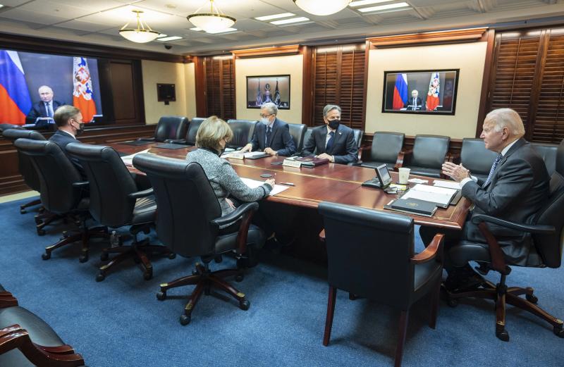 7. "Если вы это сделаете, Россия понесет огромные издержки", – предупредил президент Байден президента России Владимира Путина во время видеоконференции в Ситуационной комнате 7 декабря 2021 года. "Мы это обеспечим". Путин отрицает наличие у России планов вторжения в Украину. Байден покинул конференцию с убеждением, что вторжение будет.