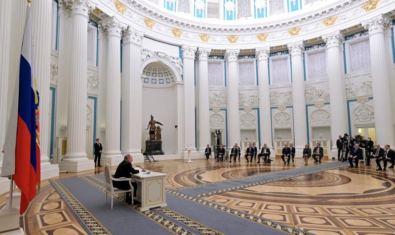 8. 21 февраля 2021 года президент Путин в агрессивной форме опросил свой Совет безопасности о признании "независимости" двух городов на востоке Украины, Донецка и Луганска. Он закладывал публичную основу для войны. "Говорите прямо", – приказал Путин директору Службы внешней разведки Сергею Нарышкину, спотыкаясь о заготовленные реплики.