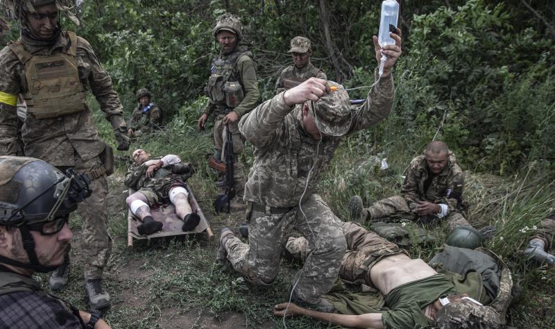 Ukrainian soldiers wounded in a Russian cluster bomb attack as they retreated in armored personnel carriers from the front lines. Ukraine was the most challenging military environment for an army since World War II. It was a full-on artillery war with Ukraine and Russia bogged down in trench warfare. The front lines barely moved.