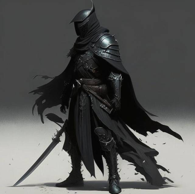 С последним сильным ударом дверь сорвалась с петель, и в помещение вошли двое воинов с зловещей и уверенной походкой. Они были в черных латах с закрытыми шлемами, носили рваные короткие черные плащи и держали устрашающие полуторные мечи, внушавшие трепет.