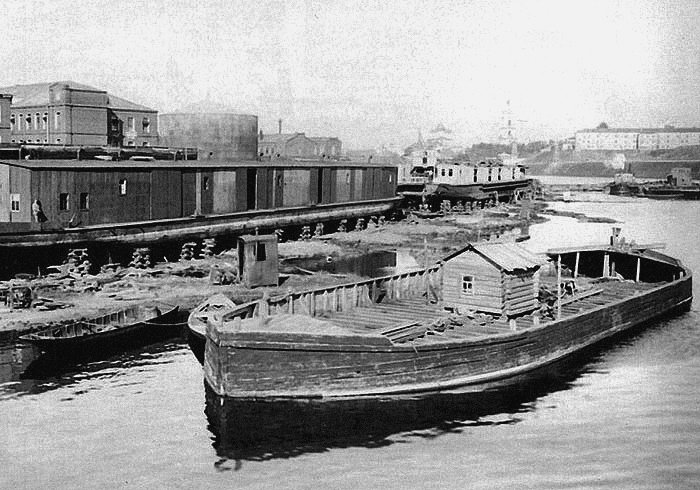Баржа у причала на Москва-реке