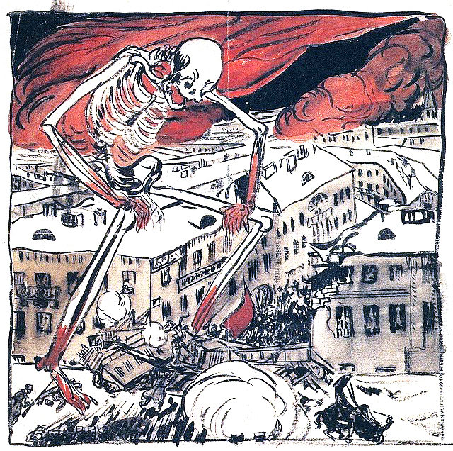 Б. М. Кустодиев. Смерть собирает кровавую жатву