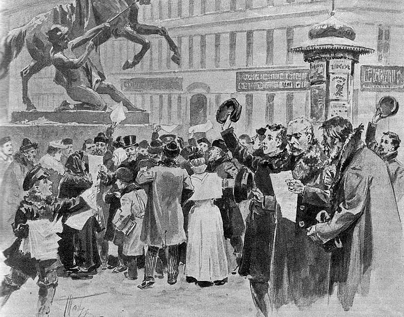 Штабс-капитан купил «Вечернюю Россию» с огромной траурной каймой, дама – «Русское вече», но приступить к чтению не успели.