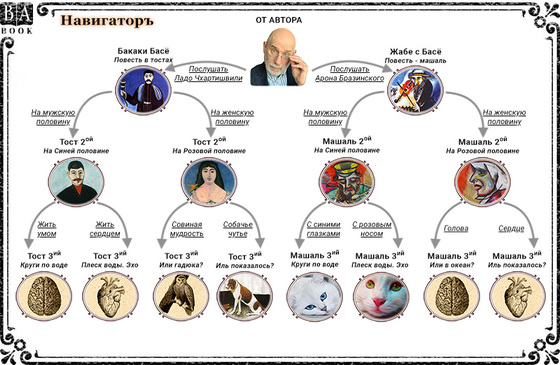 Откройте оглавление и перейдите на главу Бакаки Басё. Повесть в тостах.