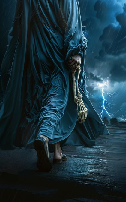 Дойдя до границы кладбища, она дальше не пошла, чтобы во тьме не свалиться в разрытую яму, а подождала, пока мрак снова озарится, и двинулась к белеющей куче мертвых костей. При второй зарнице подобрала череп, при третьей – бестрепетно оторвала от скелета костлявую руку и, совершенно удовлетворенная зловещими трофеями, пустилась в обратный путь.