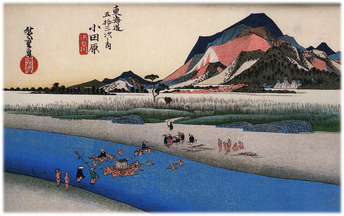 Вот так он изобразил переправу, близ которой находилась девятая станция Одавара, где останавливается на ночлег мой герой.