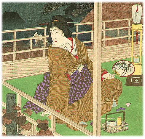 – Вам нужно изучить классическую поэзию. Хотя бы «Сто стихов ста поэтов». Ведь вы хатамото. Когда я буду писать госпоже Суйрэн благодарственное письмо, попрошу ее заняться вашим поэтическим образованием. Это ведь скорее по ее части. Про сверчка есть знаменитое танка.