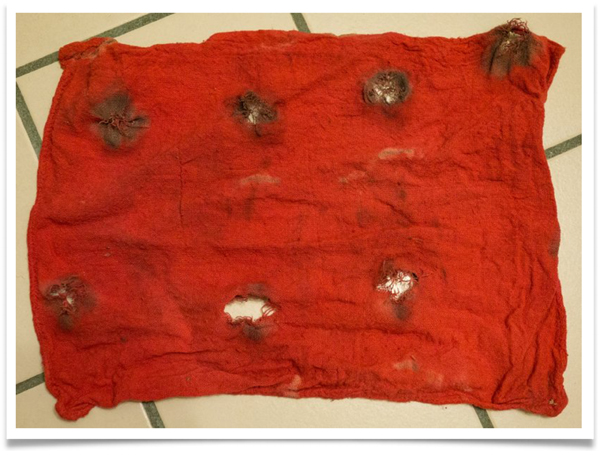 При выстреле в упор на одежде должны остаться опаленные края у дырки от пули, причем весьма заметные.