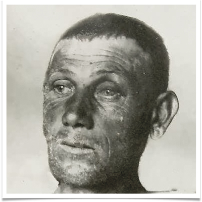 На этом снимке Александр Емельянович Абрамович в пожилом возрасте, смотрящий в сторону и загадочно полуулыбающийся.