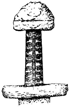 Бытование на Руси в IX–X вв. однолезвийных мечей типа киевского меча Хойновского косвенно подтверждается изображением точно такого же меча-палаша на одной из четырех сторон знаменитого языческого идола Святовита[503]503