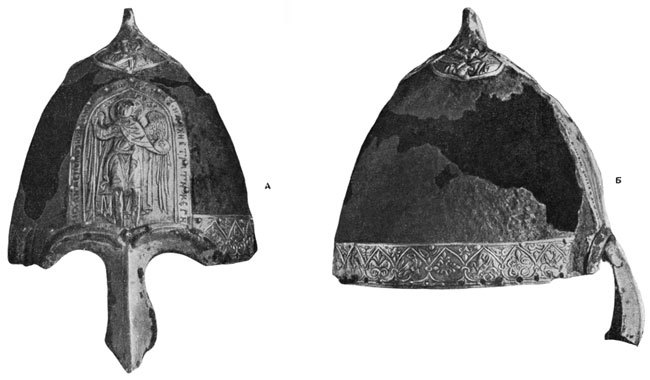 Шлем был весь набит тонким серебряным листом, поверх которого были наложены чеканные серебряные накладки, описание которых найдет место в разделе ювелирного ремесла.