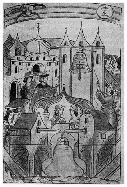 Литье колоколов и пушек требовало сложного оборудования и больших знаний. Недаром правительство Ивана III старалось пополнить кадры русских литейщиков итальянскими мастерами. Данных о литейной технике у нас очень мало. Литейный процесс состоял из нескольких элементов: 1) изготовление модели, 2) составление сплава, 3) изготовление формы, 4) собственно литье, 5) окончательная отделка.