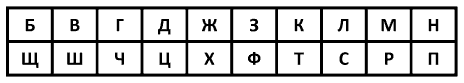 Гласные оставались при этой системе без изменения, а согласные заменялись противостоящей по вертикали буквой другого горизонтального ряда. В нашем случае для написания слова «аминь» нужно было заменить м и н. В одном вертикальном ряду с м находится р, а в одном ряду с н – п. Получается
