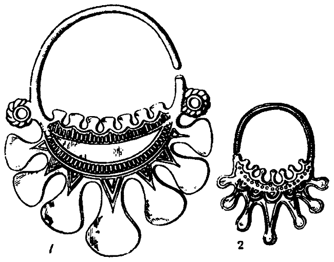В главе о происхождении русского ремесла пришлось уже вскользь коснуться сведений о ювелирном деле. Формы вещей со временем сильно изменились, но в курганах X–XI вв. сохранились пережитки значительно более ранних форм, уводящих нас к временам VII–VIII вв. Традиции антской эпохи чувствуются иногда и в городских и в деревенских вещах, но, естественно, что в большей степени чувствуются они в глухих, удаленных от крупных городов местах, например, в лесах радимичей и вятичей.
