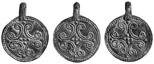 Если бы в нашем распоряжении были лишь единичные экземпляры таких вещей, то невольно напрашивался бы вывод, что орнамент нанесен резцом не на форму, а непосредственно на данную вещь. Но подобных изделий можно найти по нескольку экземпляров, совершенно тождественных друг другу.